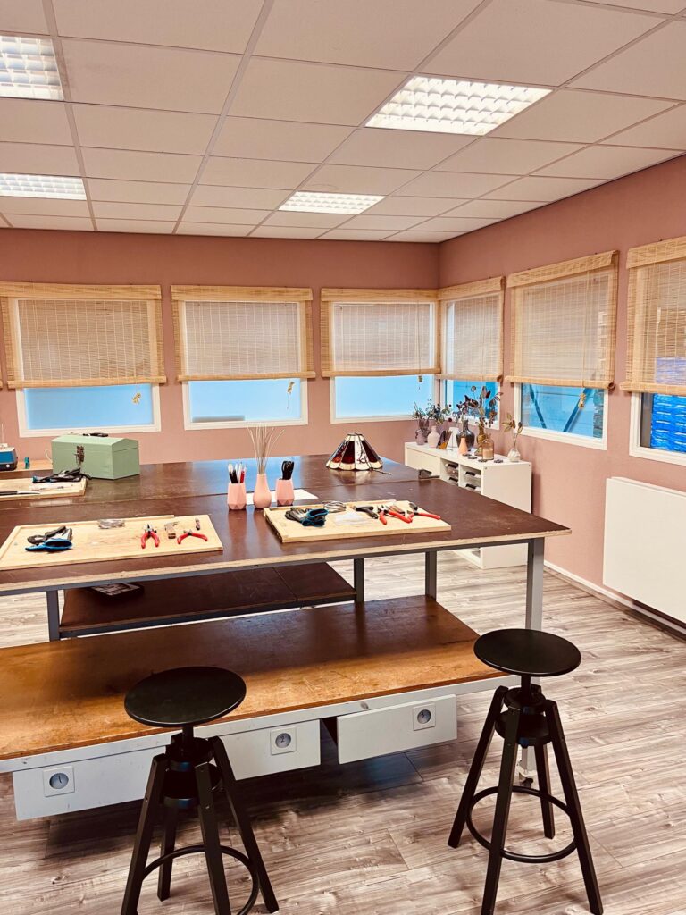In het atelier wordt gesneden, gesoldeerd, gelachen en soms zachtjes gevloekt als iets nét niet wil. Dit is de plek waar alles ontstaat. Van eerste schets tot glimmend eindresultaat. Wil je weten waar het creatieve vuurtje aan gaat?